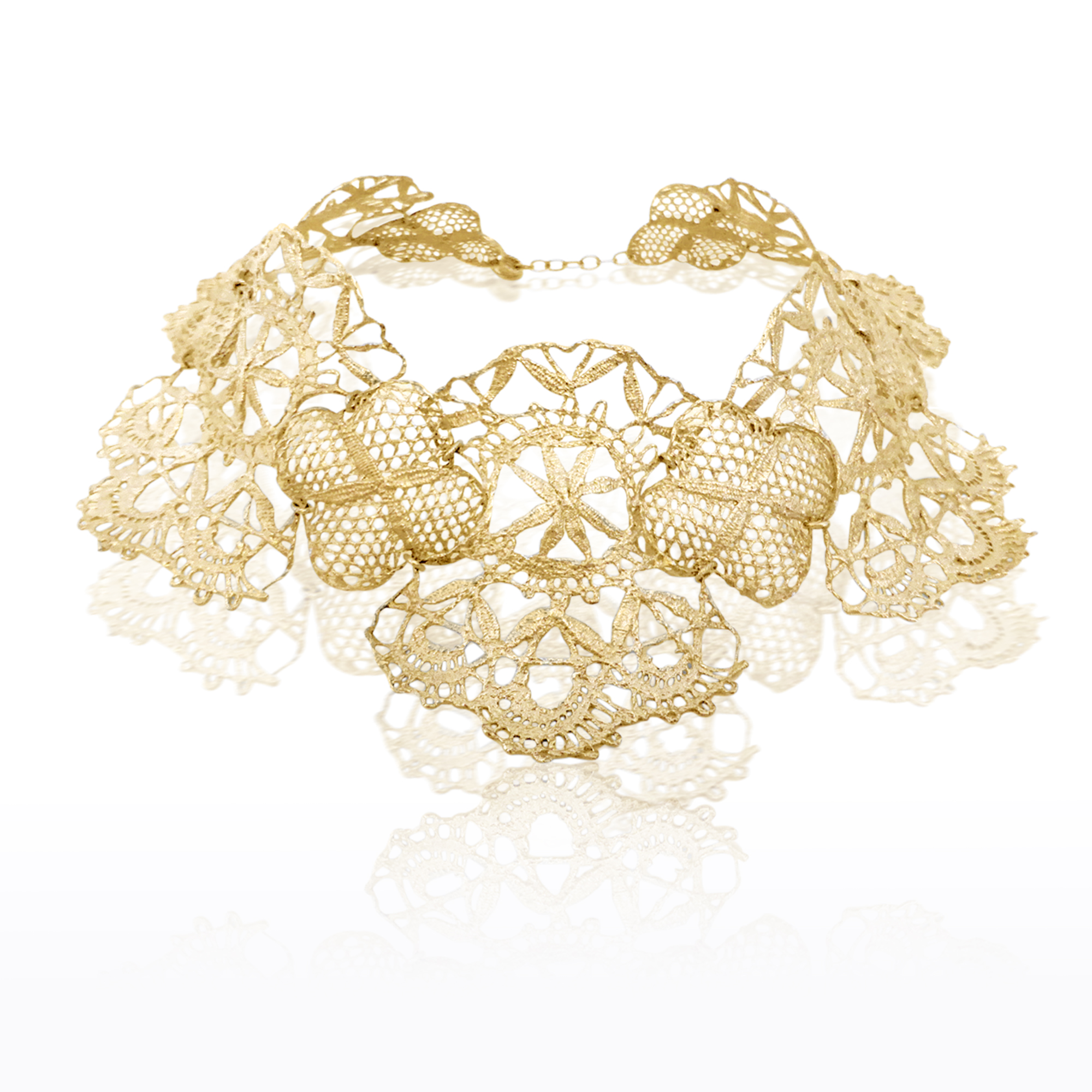 Its delicate lace pattern pays homage to the Venetian art of lace-making, allowing every ray of light to dance softly on the skin.