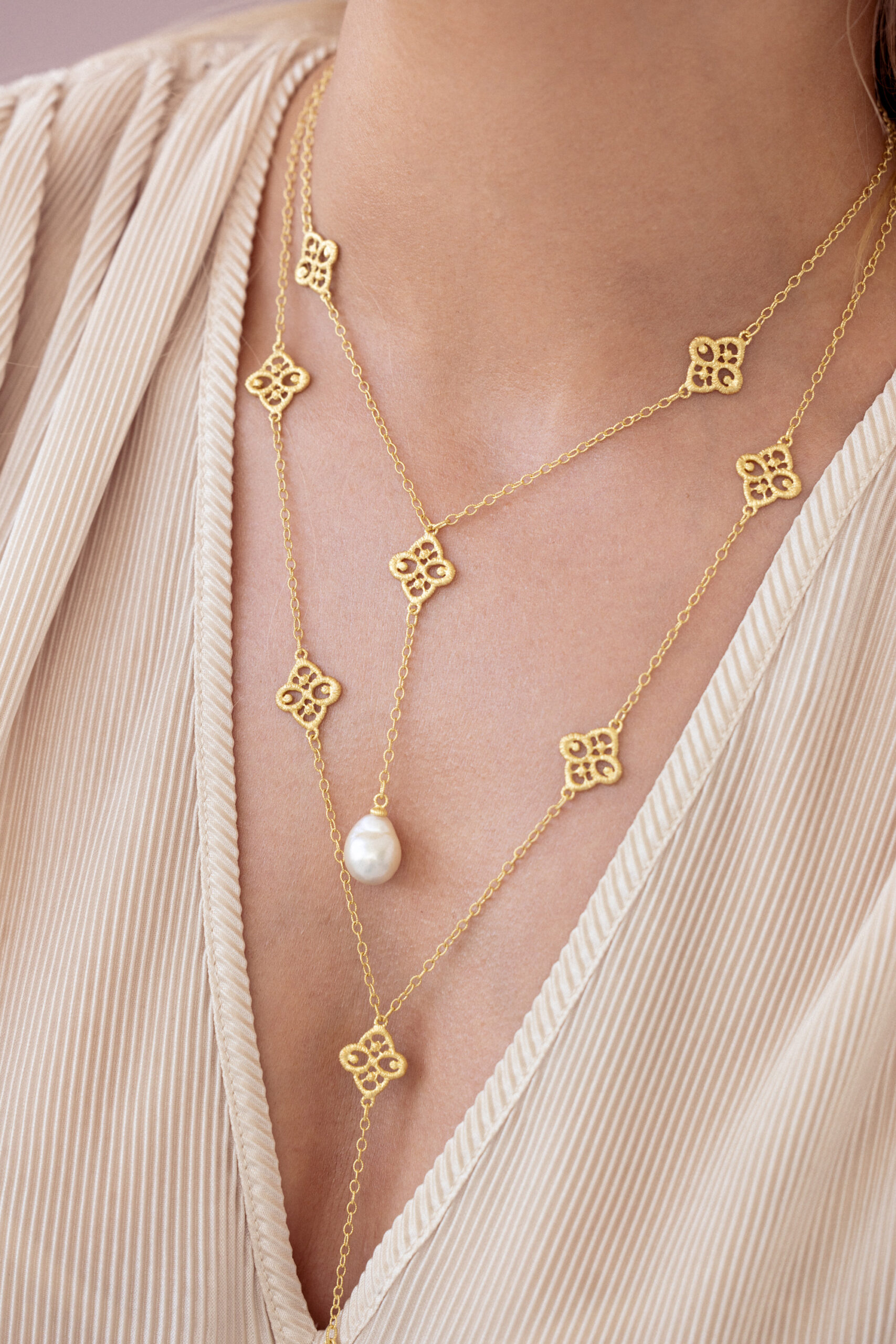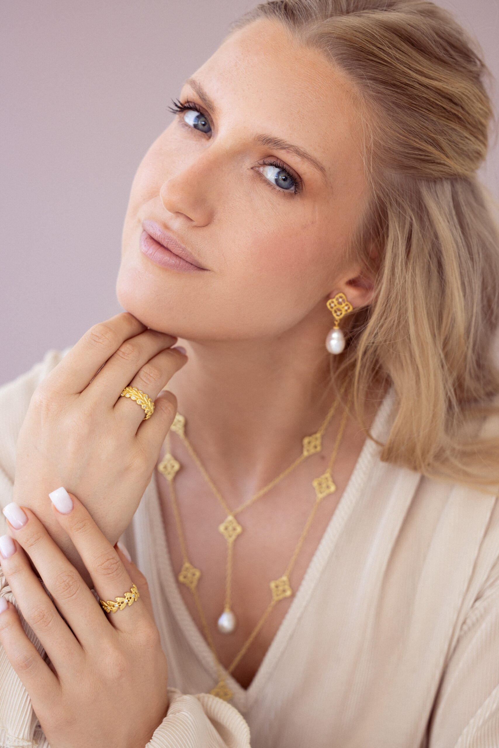 Die Chiara Pearl Kollektion verkörpert die Leichtigkeit des italienischen Lebensstils: sanfte Perlen, die im Sonnenlicht schimmern, kombiniert mit edlen Ornamenten und feinen Akzenten. Jedes Schmuckstück ist inspiriert von der Eleganz und dem Charme der italienischen Architektur – perfekt für unvergessliche Momente unter der Sonne.