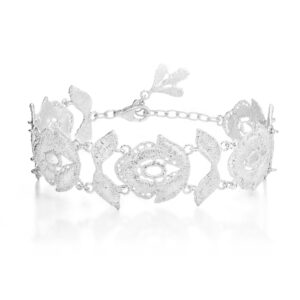 Armreif und Armband in hell schimmernden Silber sind ein vielseitiges Accessoire zu jedem Stil, im zarten Spitzenmuster passen Sie auch an das Handgelenk der romantisch-modernen Braut. Schwarz-rhodiniertes Silber steht gleichermaßen für Klassik und Avantgarde, für Anmut und Selbstbewusstsein und umgibt seine Trägerin mit einer geheimnisvollen Aura. Die Armspange Nottingham Heritage wirkt in diesem Farbton besonders elegant.